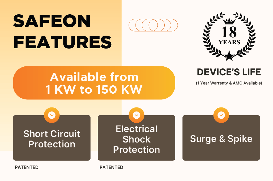 A Revolution in Electrical Safety, एक Device — Complete Protection. SAFEON is a patented technology created to protect you from
